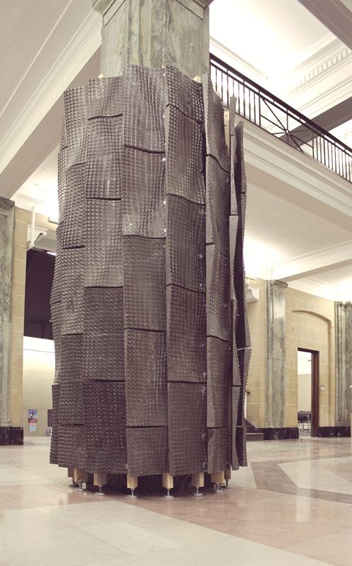 The interactions between CEMEX engineers and the architects led to the design, molding, and execution of the tiles, which were then drilled and mounted on a wooden frame to create the tower that was constructed around an existing column.